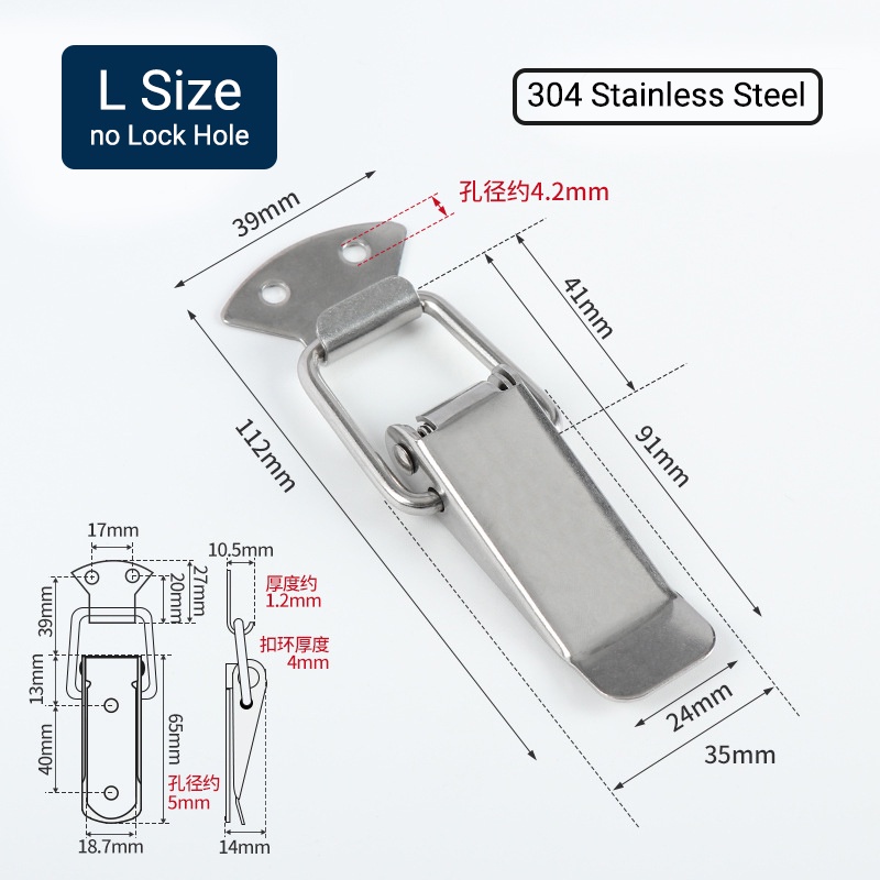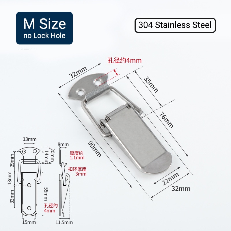Spring Loaded Toggle Latch 304 Stainless Steel Case Wooden Box Chest Suitcase Trunk Latch Catch Hasp Clamp Catch Clip Lock Buckle