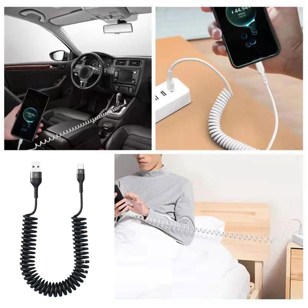 Spring Pull Fast Charging Cable/ 66W 5A USB Type C Retractable Telescopic Charging Cable / Car USB C Charge Cord for Android Phone Accessories/ 5A Type C Data Cable