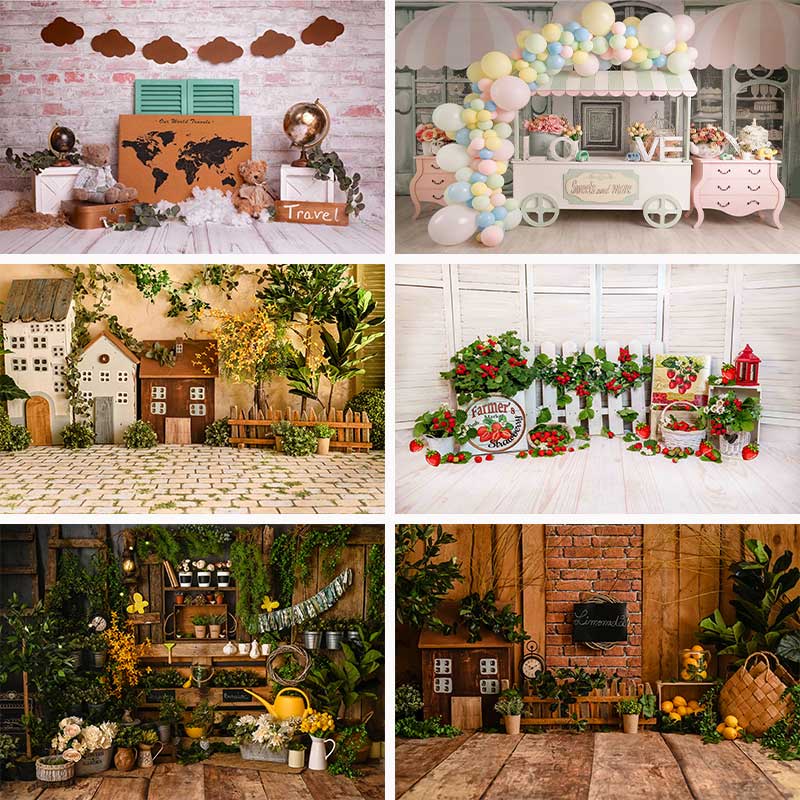 Spring Travel Strawberry Lemon Flowers 3D Backdrops For Girls Birthday Party Photographic Studio Backgrounds Photocall As the Pic Print