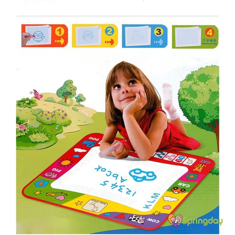 Springday1-Water Magic Drawing Mat Set Kids Water Painting Drawing Doodle Board Mat with 2 Magic Pens