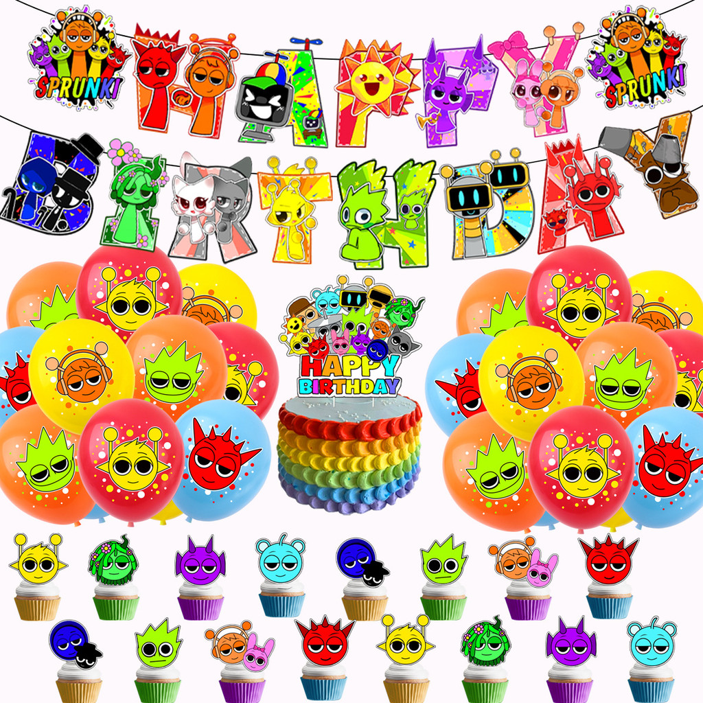 Sprunki Incredibox Sprunki Theme Birthday Party Supplies Sprunki Flag Pulling Balloon Cake Insertion Decoration