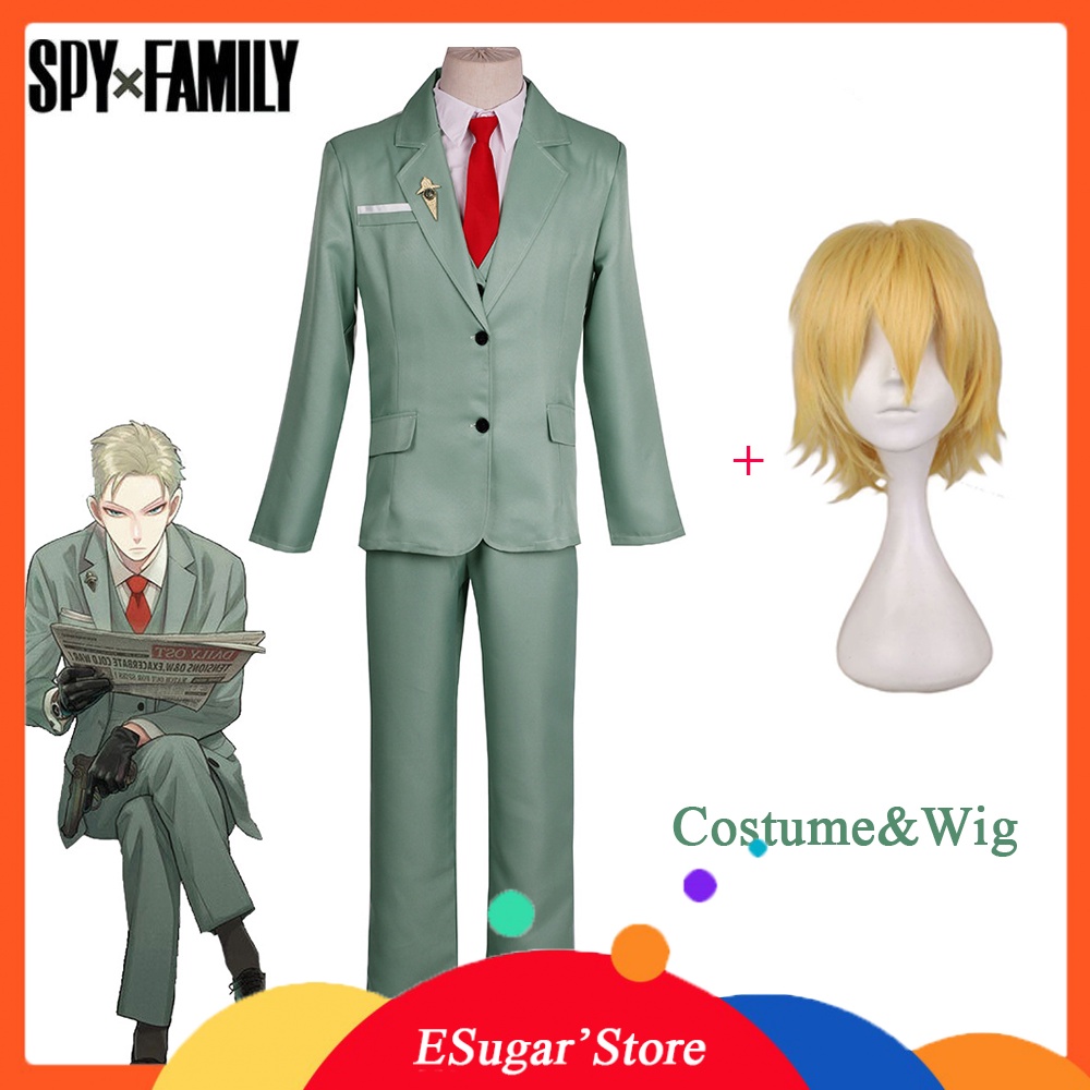 Spy Family Loid Forger Cosplay Costume Twilight Cosplay Light Green Suit Short Blond Wig Outfit Men Clothes Halloween