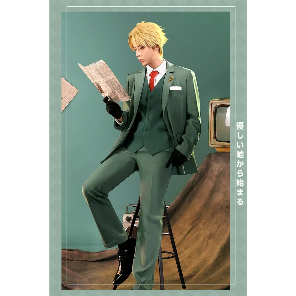 Spy X Family Loid Forger Cosplay Costume Light Green Suit Short Blond Hair Vest Shirt Tie Halloween