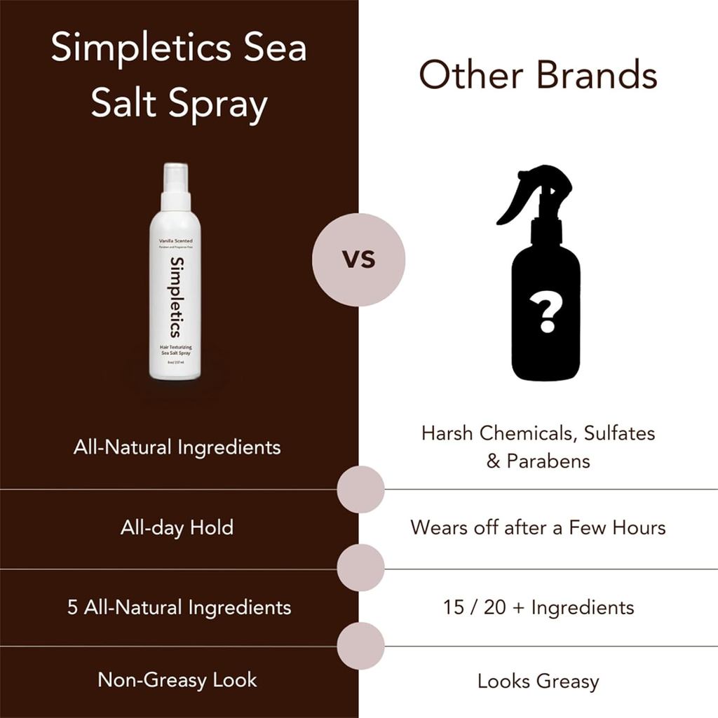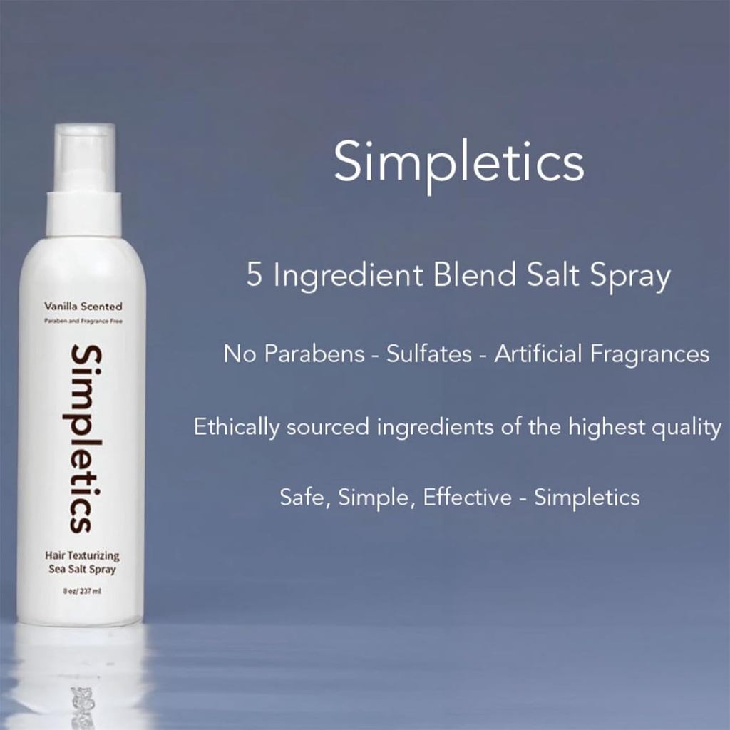Simpletics Sea Salt Spray, Simpletics Texturizing Vanilla Sea Salt Spray, Sea Salt Spray Hold für Haare, Locken und Beach Waves Spray für Haare, Feuchtigkeits- und Haarglanzspray (
