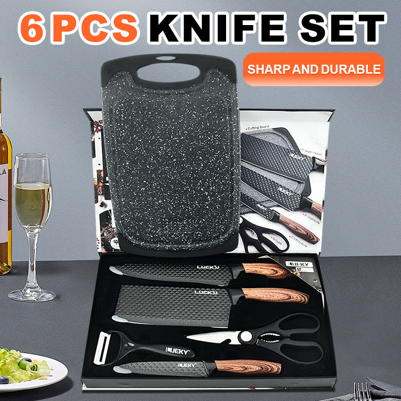 Knife Set, 6 Piece Knife Set Nonstick Coated High Quality Kitchen Knife, Gift Pack