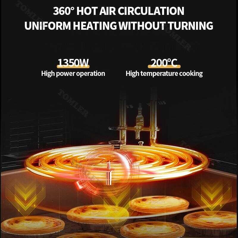 B77 【Factory Direct Descent】8L TOMLER Air Fryer Electric Oil Free Non Stick Pan Timer Tools Fries Ri