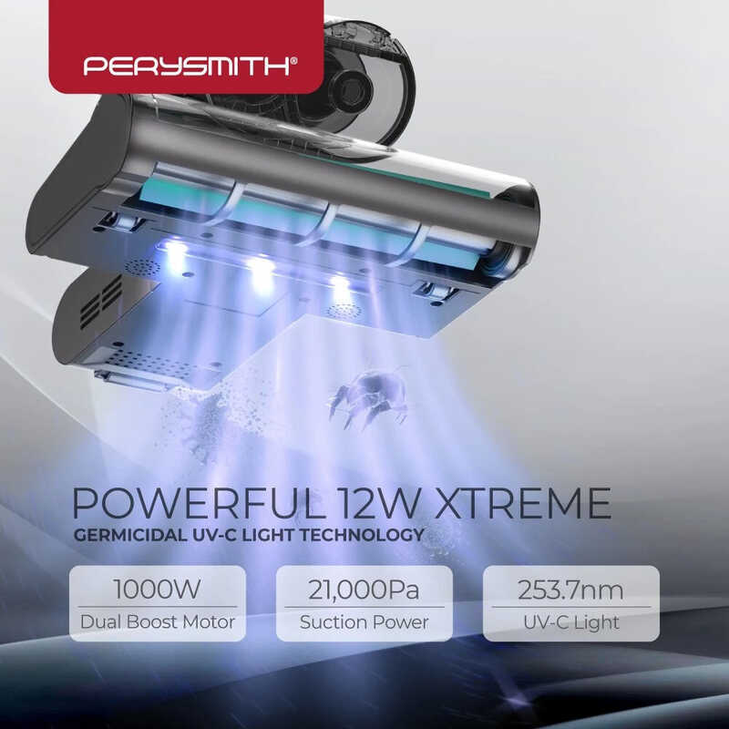 Dust Perysmith Mite Corded Vacuum Cleaner With UV And Mite Sensors For Bed Sofa Mattress V30pro