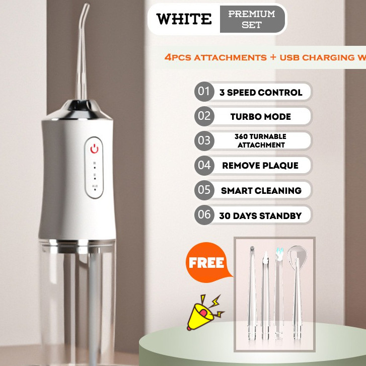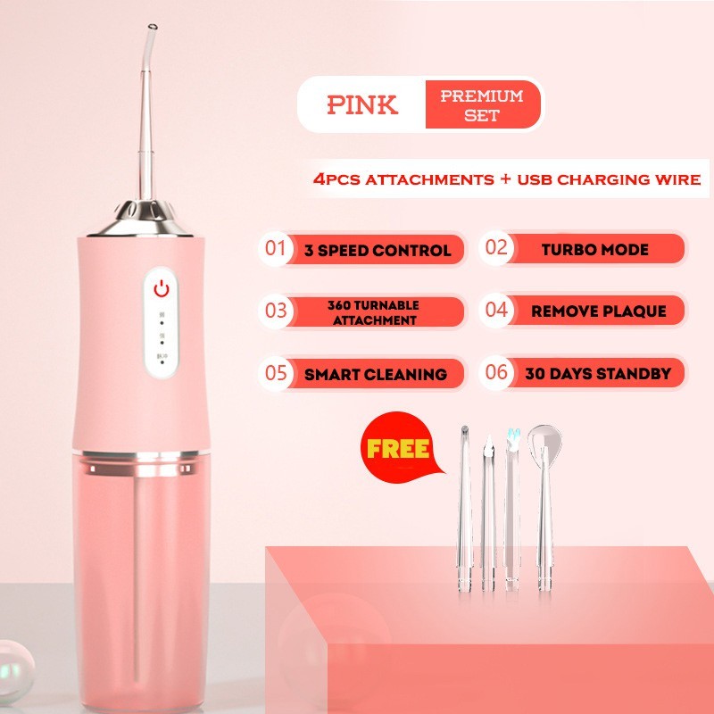 Kimp Smart Electric Flosser Oral care Water Flosser 4 Heads 220ML Oral Irrigator Rechargeable Water