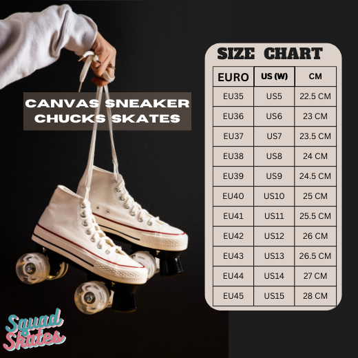 Squad Skates Sneaker Skates Canvas Chuck Roller Skate Unisex EU38/US7 to EU41/US10-White