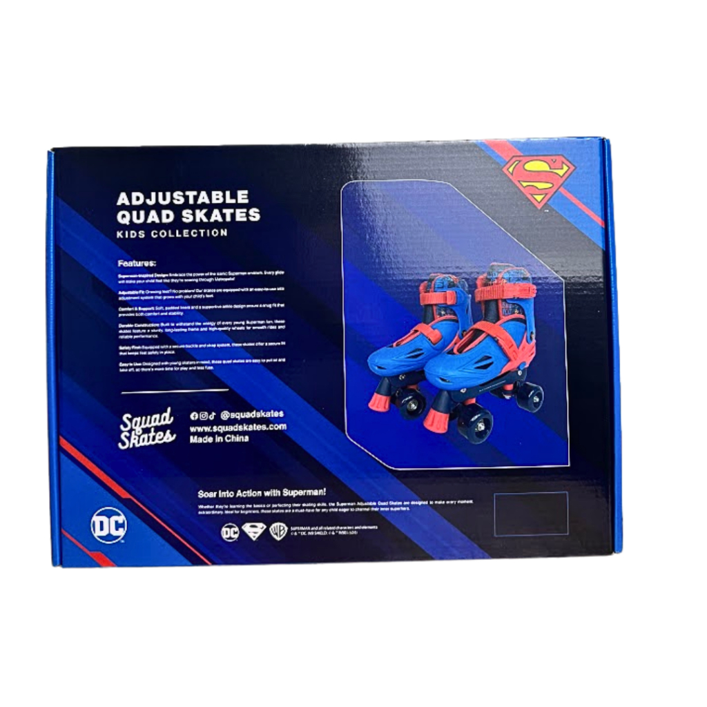 Squad Skates Superman Quad Adjustable Skate for Kids (S/M/L) EU31 to EU42 -Blue/Red