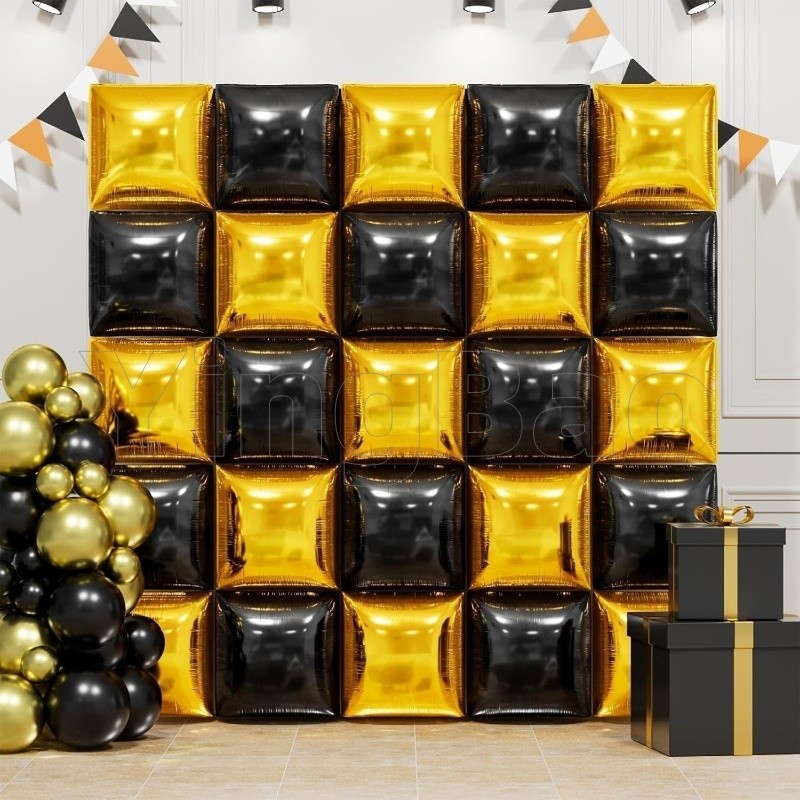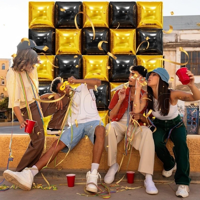 Square Foil Balloon Double Side Black Gold DIY Square Background Wall Balloons Valentine's Day Graduate Party Baby Shower Birthday Party Wedding Decor
