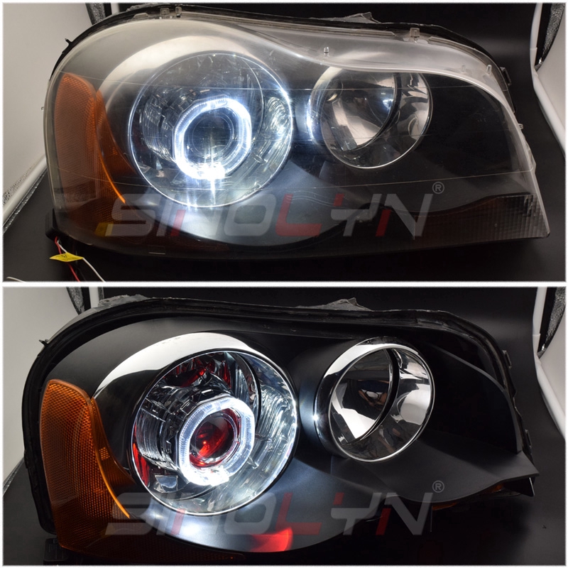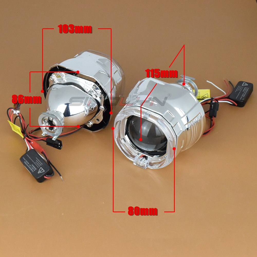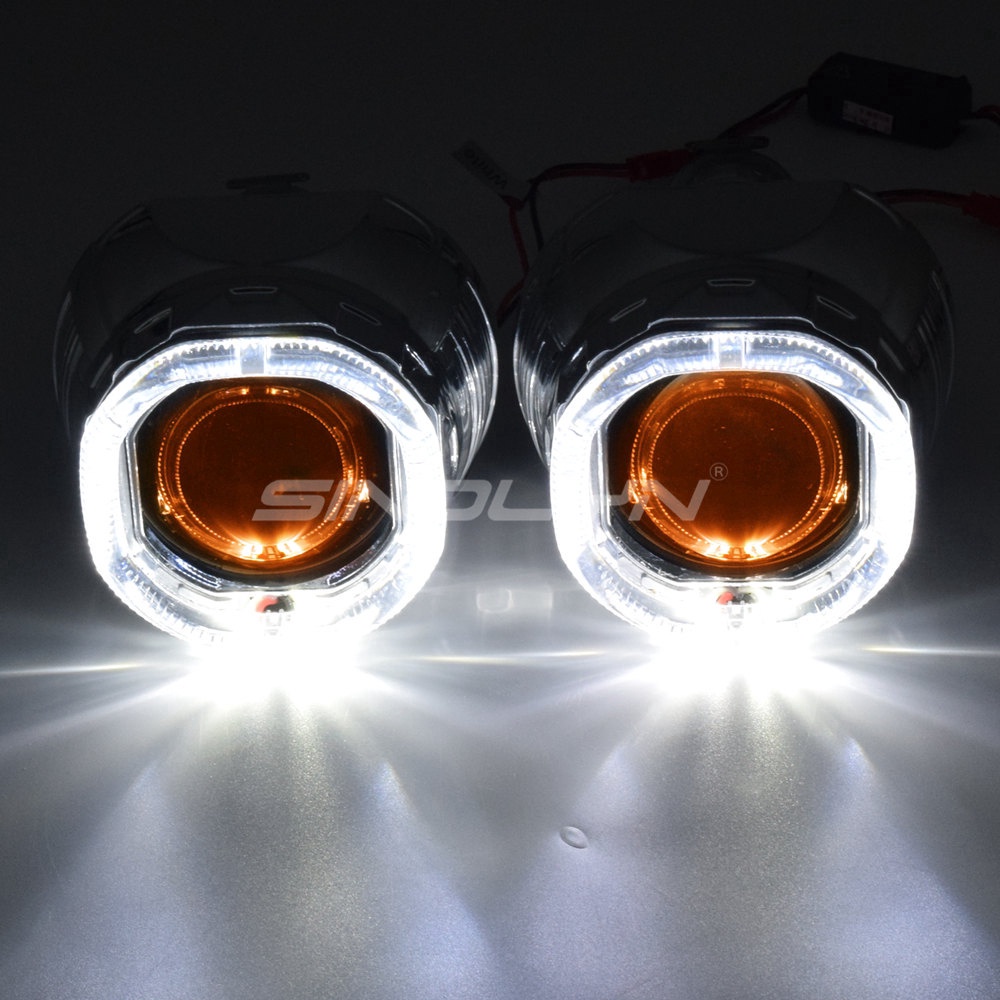 Square LED DRL Angel Devil Eyes Halo Rings DRL Car Headlight Bi-xenon Projector Lens H1 H4 H7