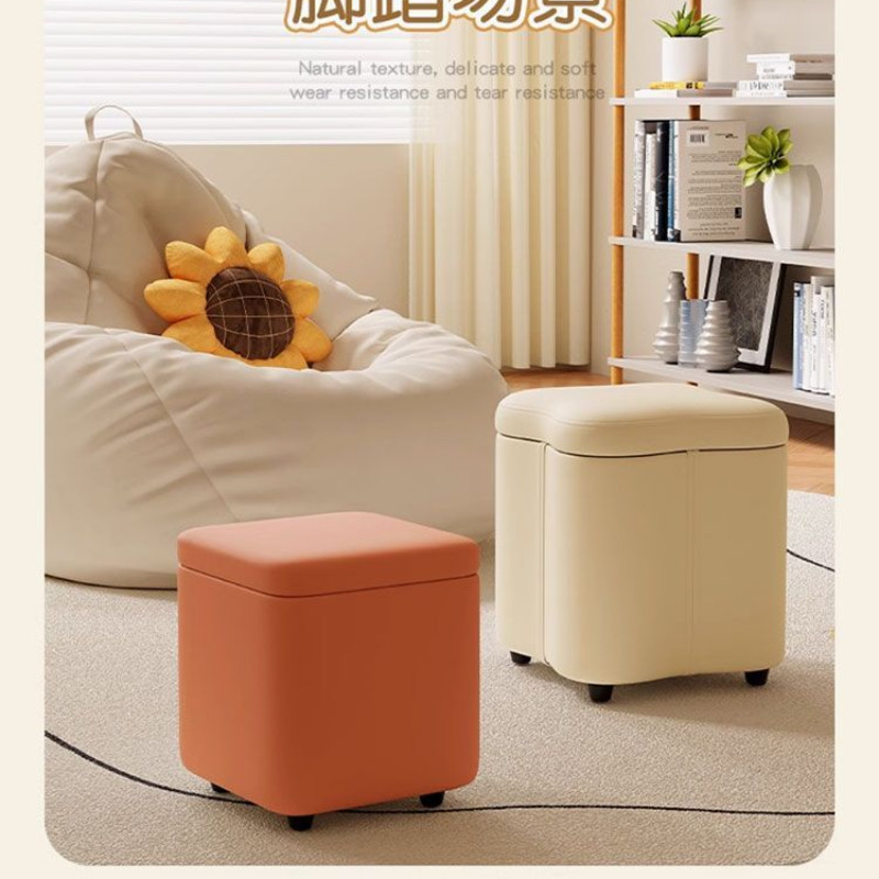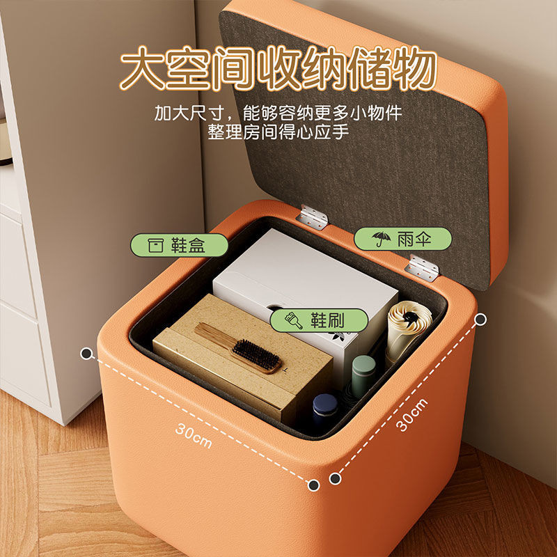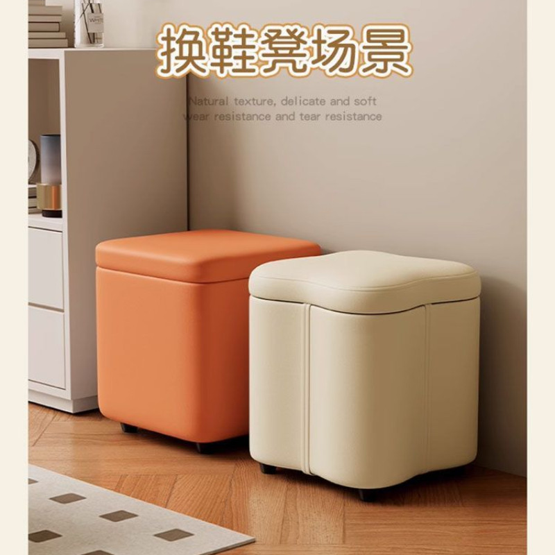 Square Storage Stool Leather Dressing Stool Home Shoeshine Stool Multifunctional Stools Stable Waterproof