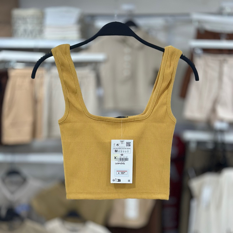 Square Tank Top Shoulder Strap Sando for Women Camisole Ribbed Knitted Crop Top ( shades of YELLOW )