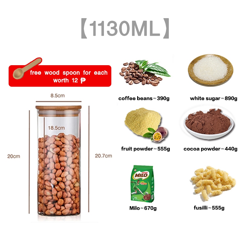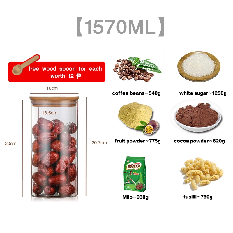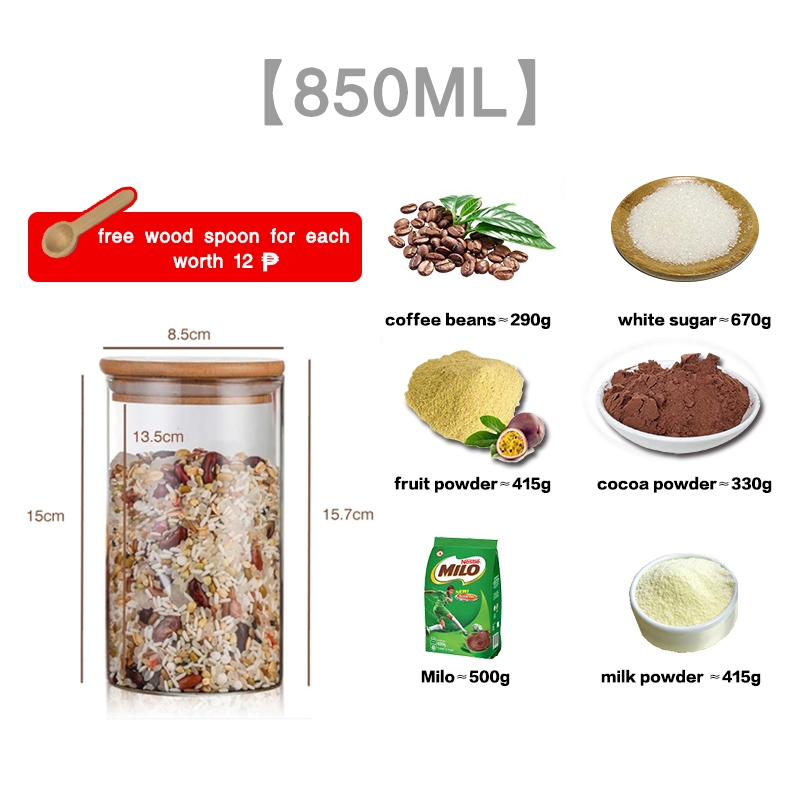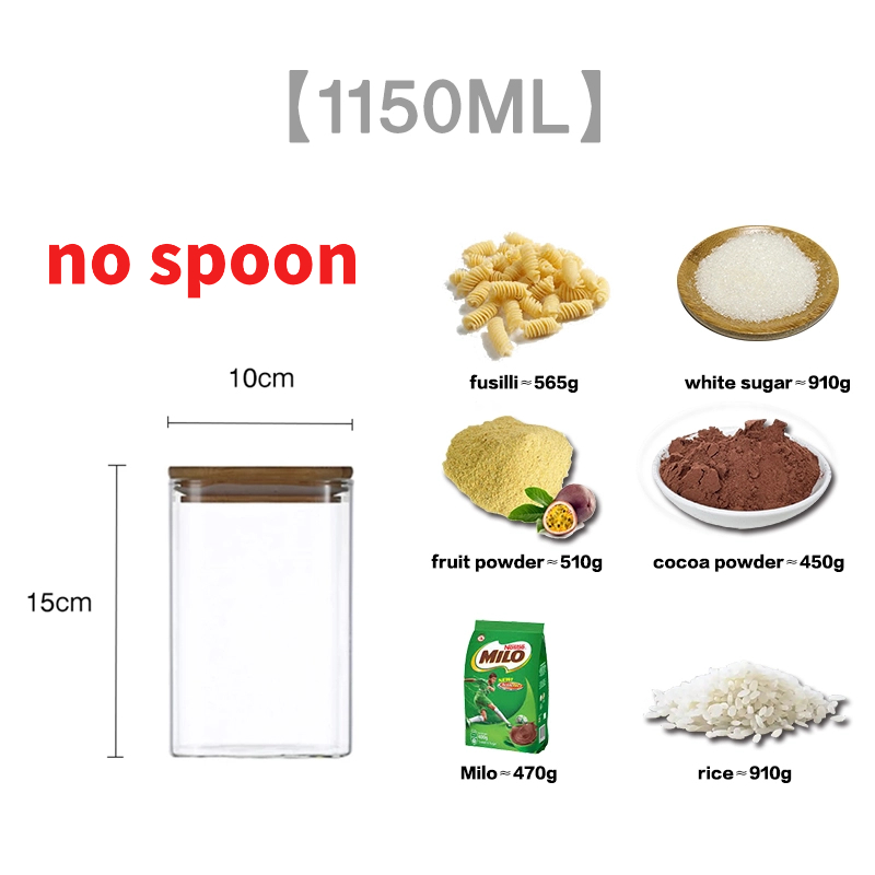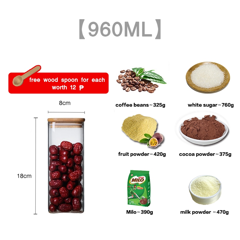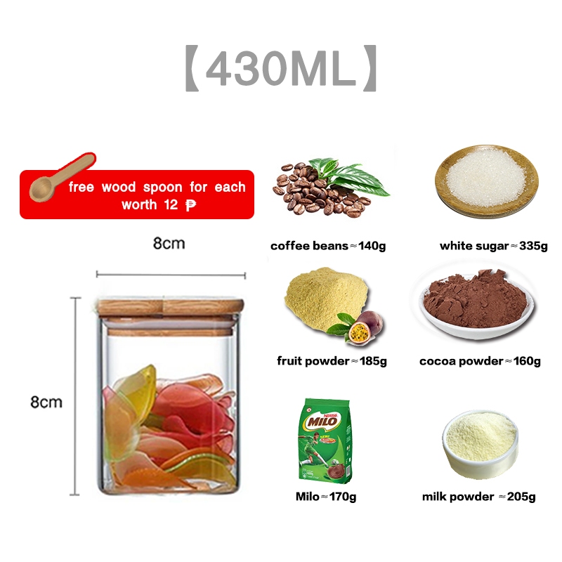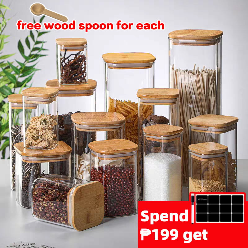 Square bamboo lid Glass Food Coffee Bean Kitchen Cans Container Bottle Candy Jar Glass Canister