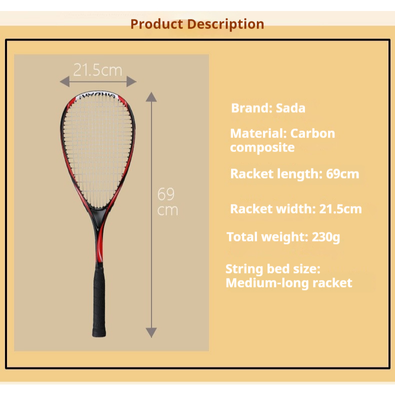 Squash Racket Ultra-Light Carbon Single Racket, Beginner Advanced Training Dedicated