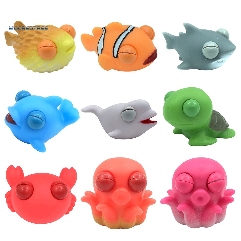 Squeezing Animal Toy Lovely Fish Turtle Crab Shark Dolphin Whale PVC Relieve Boredom Vent Toys Eye Popping Sea Animal Decompression Toy Children Gift