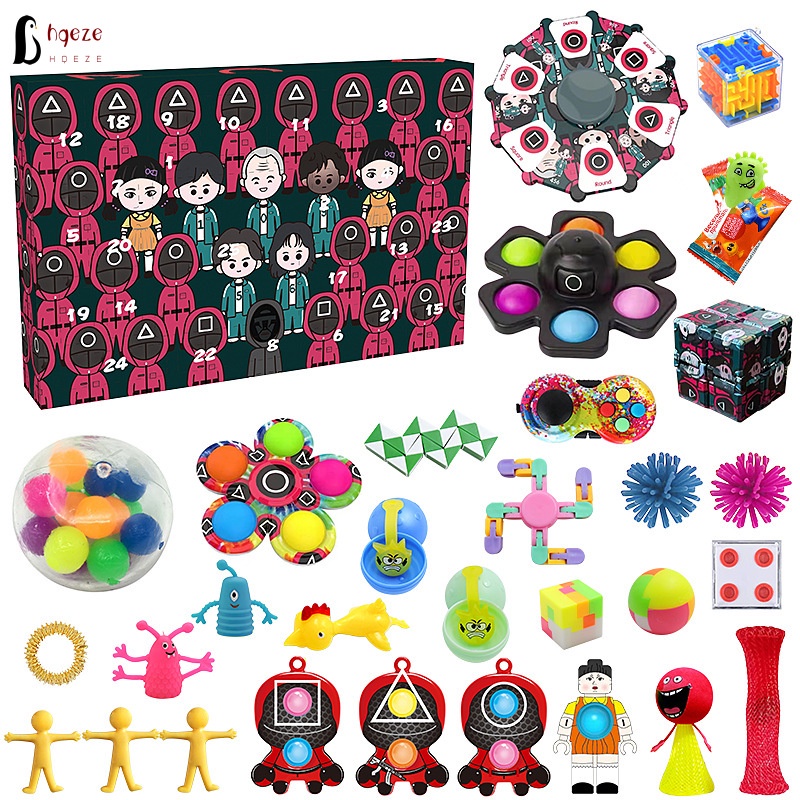 Squid Game 24 Fidget Toy Advent Calendar Anti Stress Relief Toy Set Surprise Christmas Box Slow Rising Squishy Squeeze Kids Gift