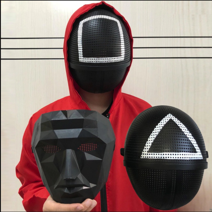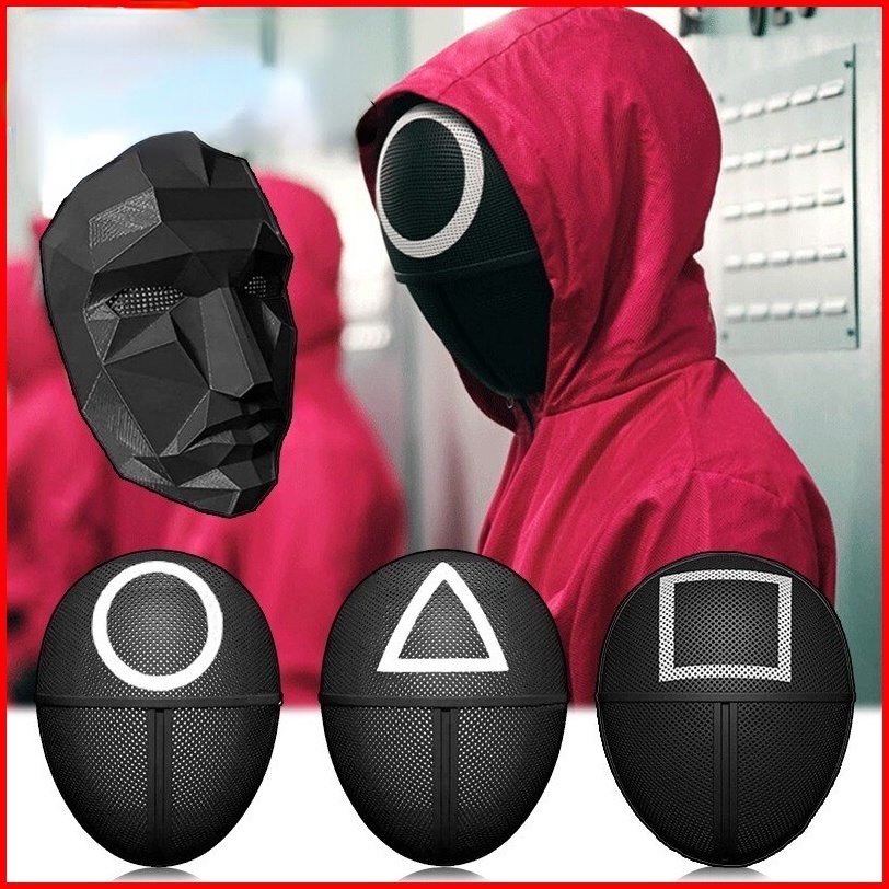 Squid game soldier mask Halloween Cosplay horror headgear staff guard role-playing Round Square Triangle mask