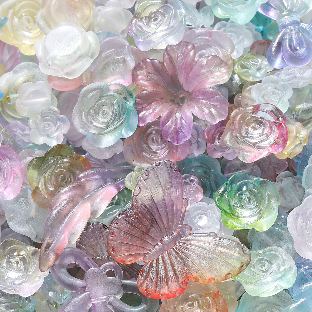 St. Kunkka 20g Mixed Color Acrylic Beads Frosted Irregular Mixed Material Package Butterfly Leaves Flowers Suitable for DIY Jewelry Making Necklace Bracelet