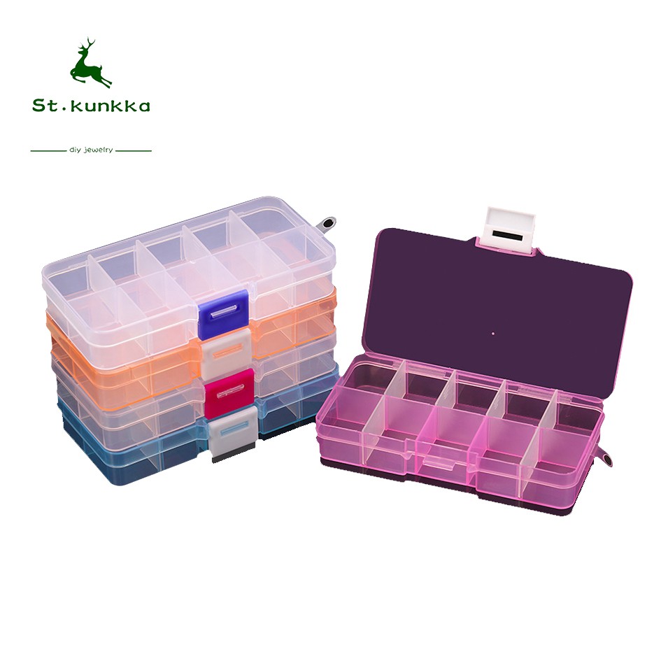 St.kunkka Plastic Transparent Storage Box Beads Jewelry Container 10 slots Storage BoxJewelry Kit MedicineTool box