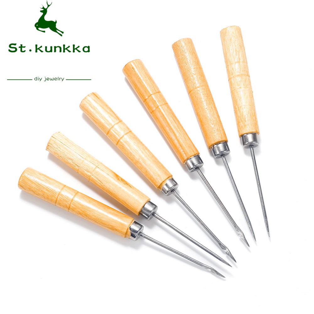 St.kunkka Wooden Handle Sewing Awl Hand Stitching Tool jewelry pliers and scissors and tweezers Can be used for DIY jewelry making