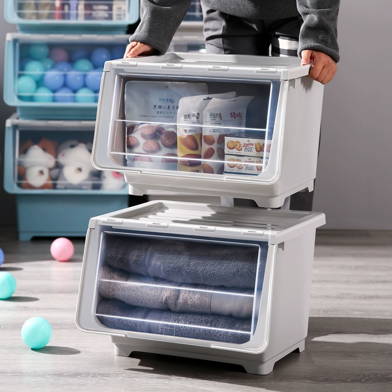 Stackable Plastic Storage Box Large Capacity Flip Top Storage Box with Wheel Wardrobe Box flip top home organizer for toys