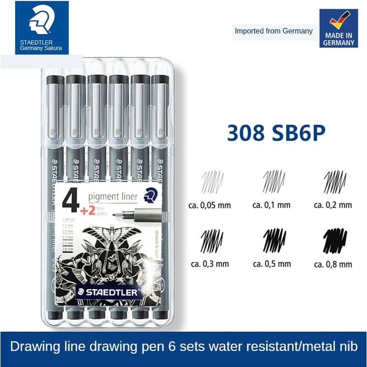 Staedtler Needle Line Cutter Pen Set Of 6 (Black) Waterproof Pigma pigment liner