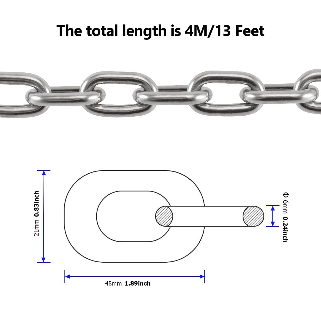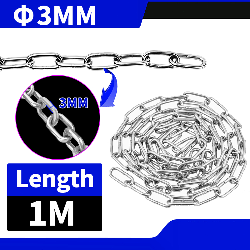 Stainless Chain 304 Stainless 1meter 3.3 feet 3-4mm Welded Lifting Link marine Stainless Chain