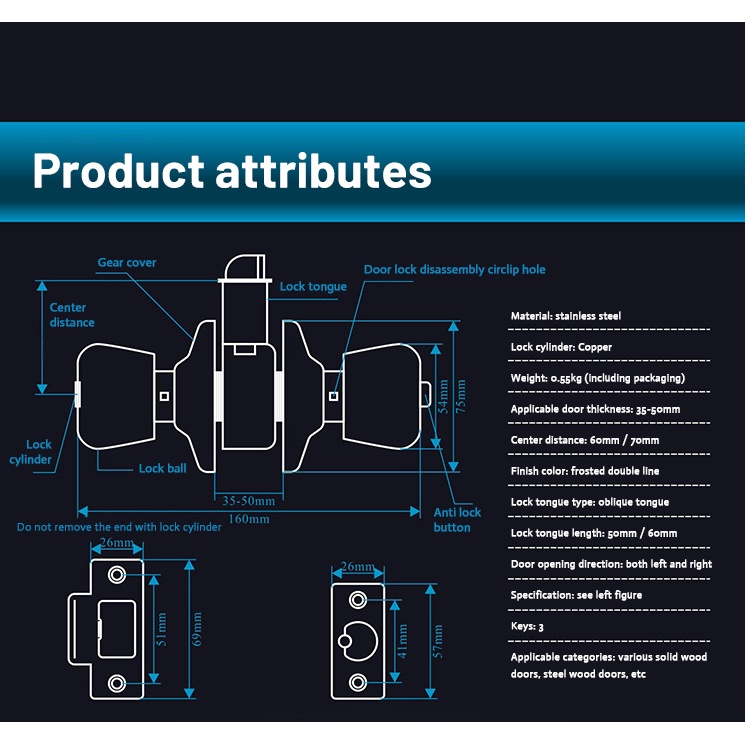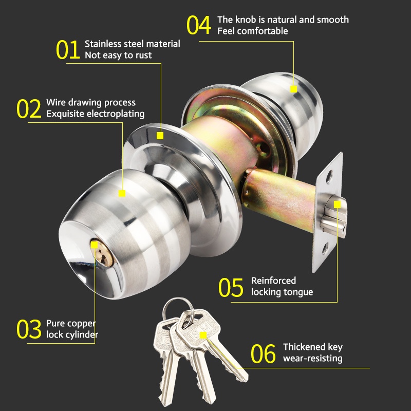 Stainless Door lock Security Heavy Duty Anti Theft Door Handle Knob Bedroom insidedoor locks