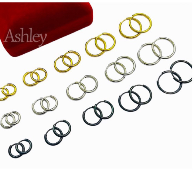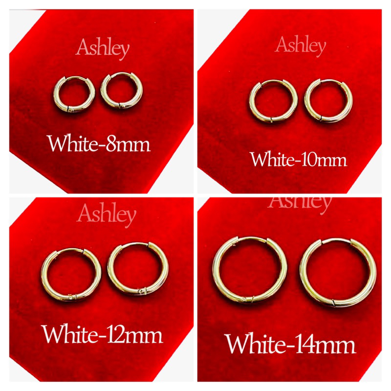Stainless Gold White Black Loops Earrings Pairs 8mm 10mm 12mm 14mm 16mm Hoop