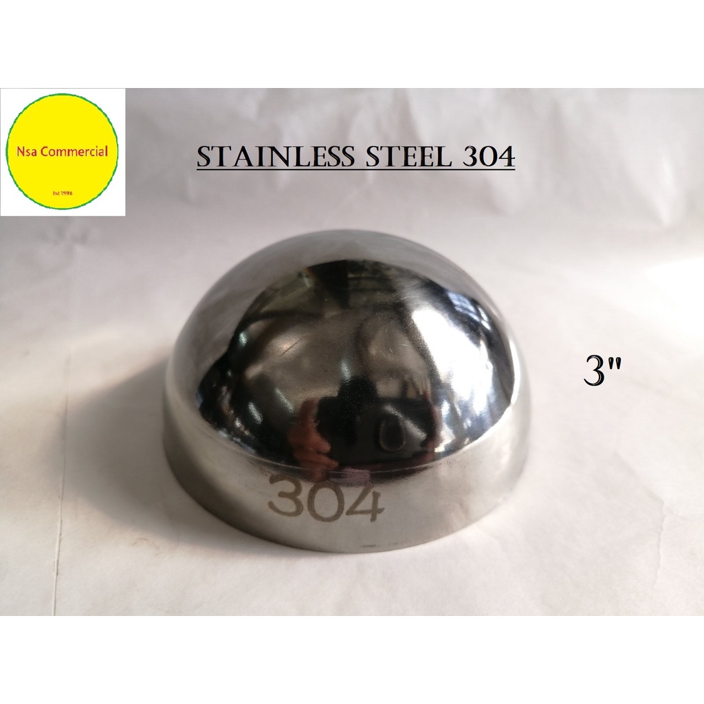 Stainless Round tube End Cap 3" outside dia. (Half Sphere) 304 1PC