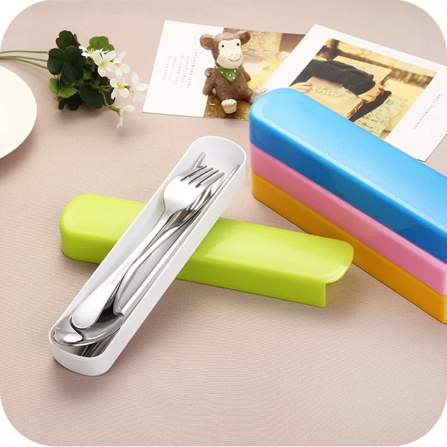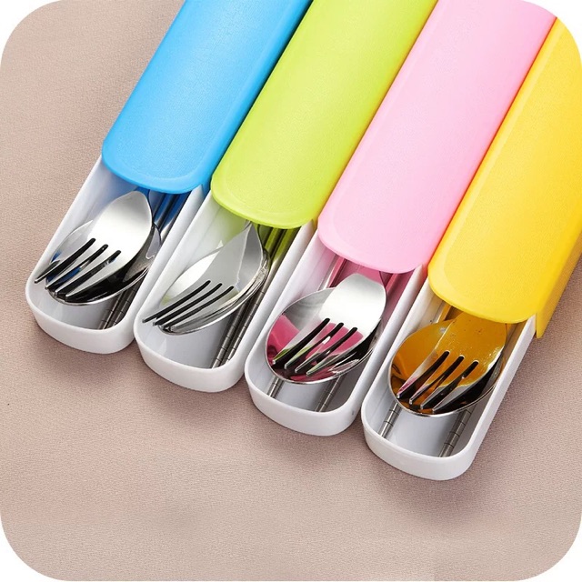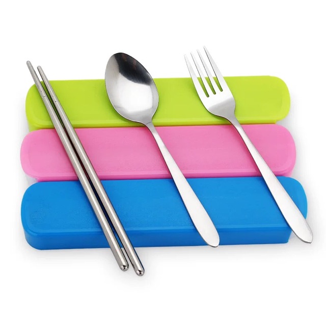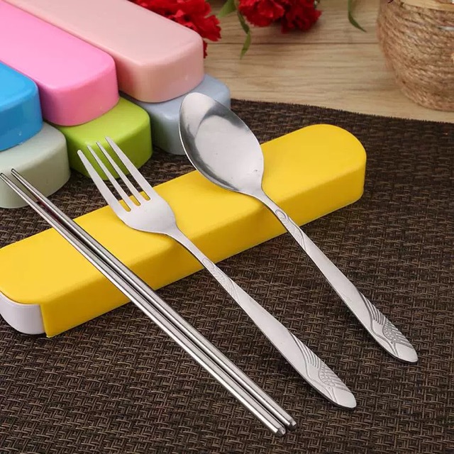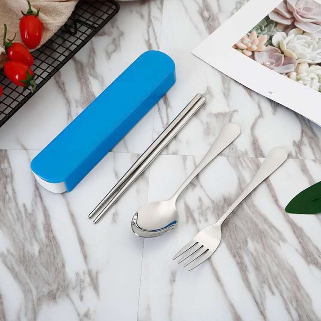 Stainless Spoon Fork & Chopsticks Tableware 3in1 Set with Storage Case Travel Portable Spoon Set