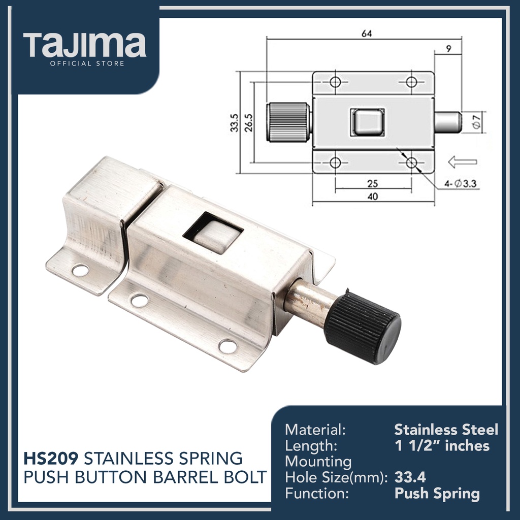 Stainless Spring Push Button Barrel Bolt Sliding Lock