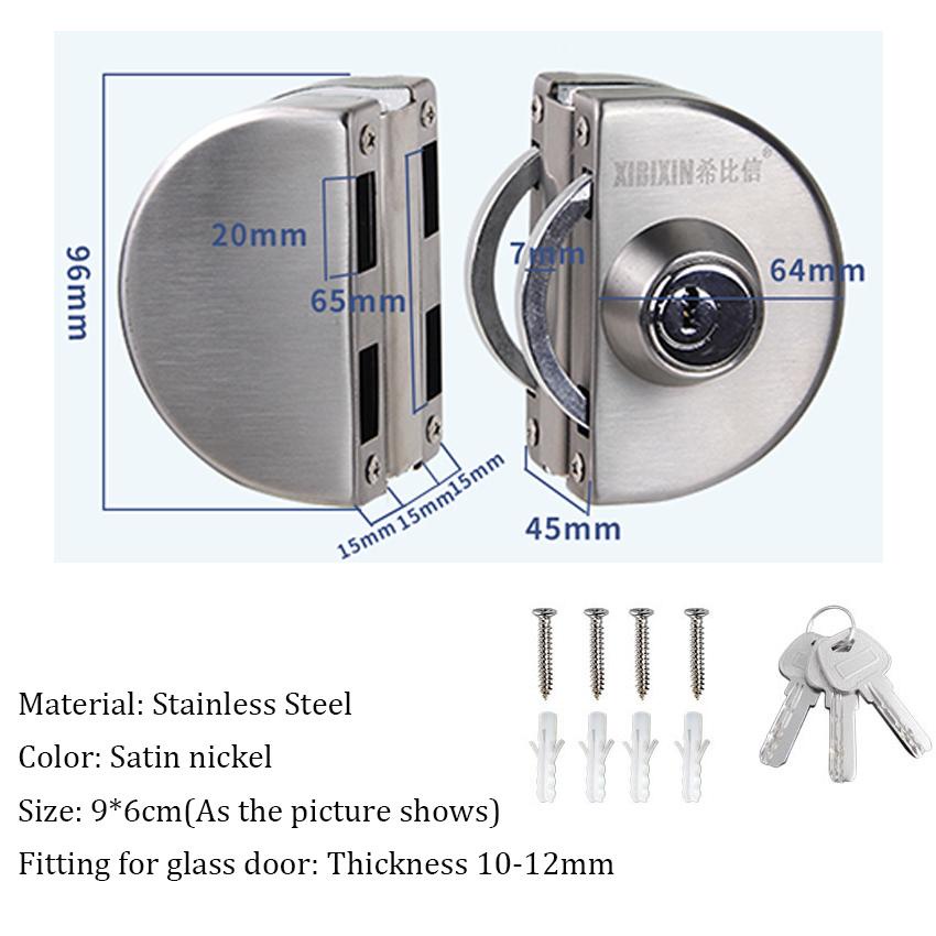 Stainless Steel 10~12mm Glass Door Lock with Key Open/Close for Family Hotel B Swing Door Glass Door