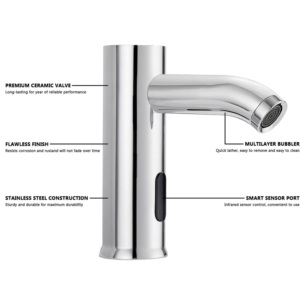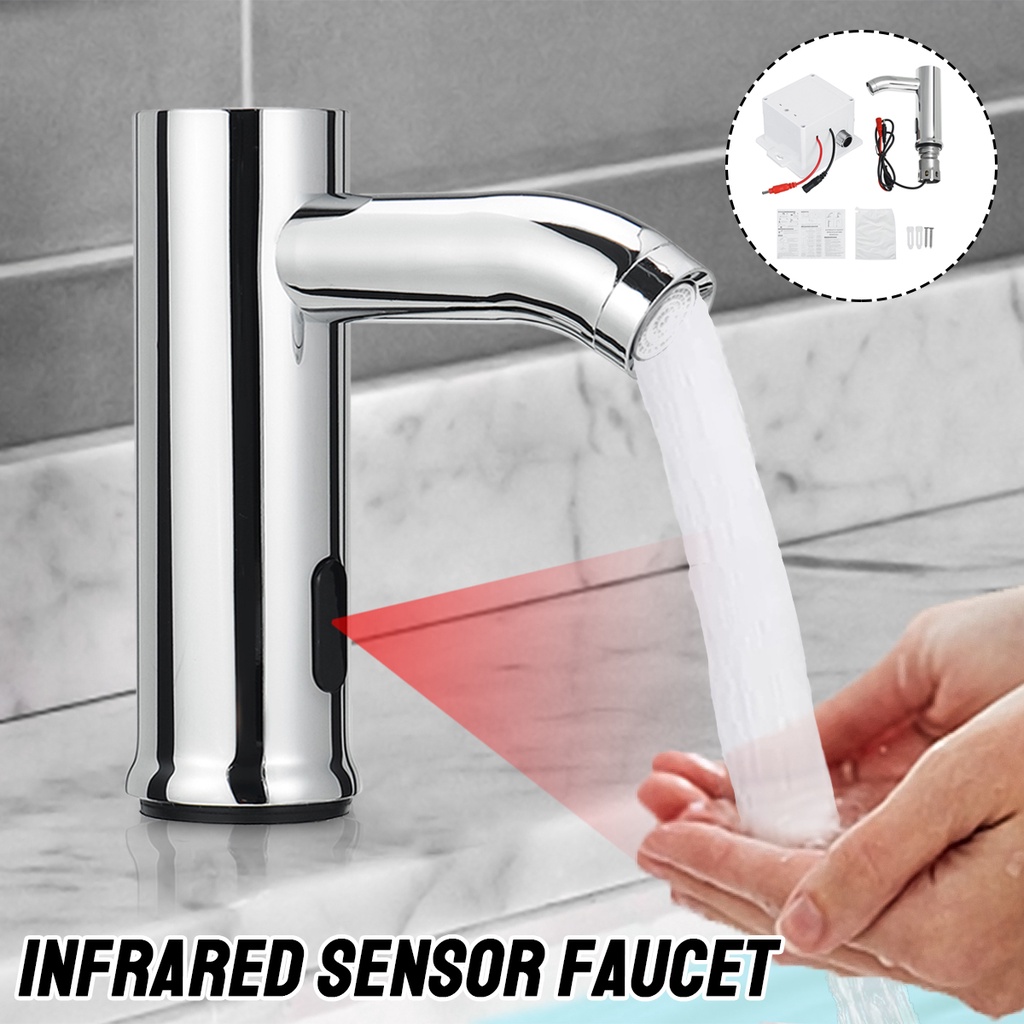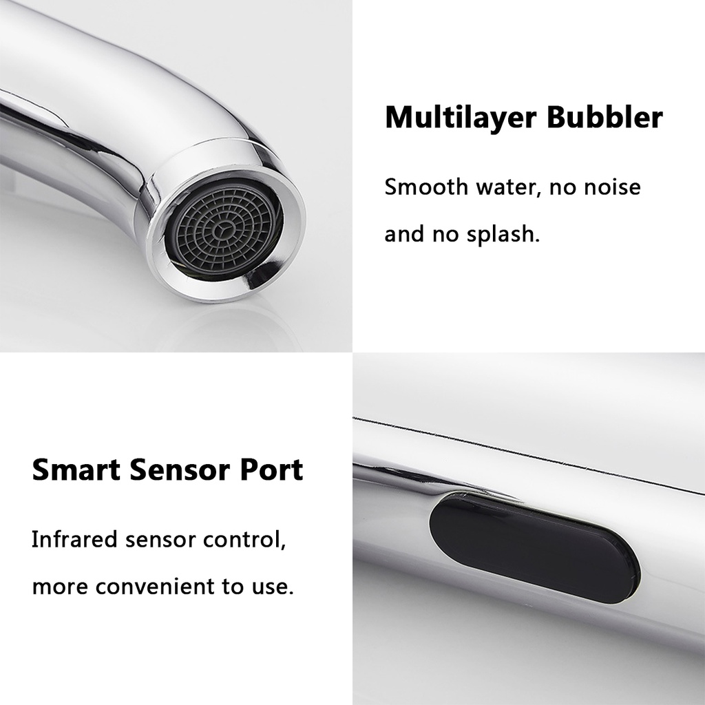 Stainless Steel Automatic Infrared Sensor Sink Faucet Bathroom Touchless Basin Water Tap Single Cold Deck Mounted DC 6V