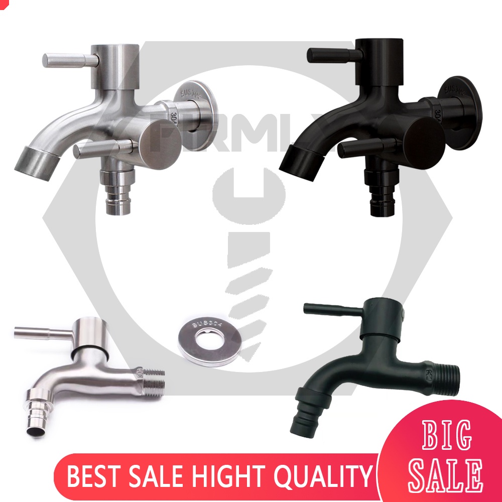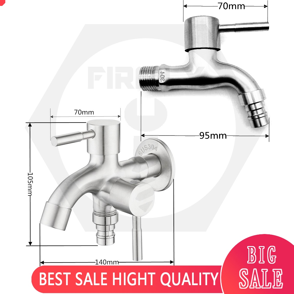 Stainless Steel Bifunctional Two Way Valve Bibcock Wall-Mounted Washing Machine Tap Faucet