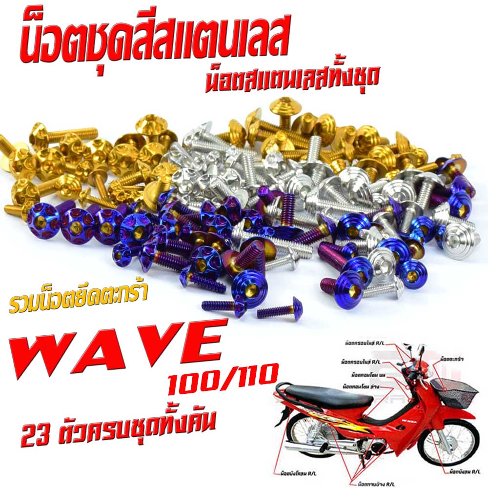 Stainless Steel Console Nuts Color Set Model WAVE 100/110 (1 Has 23 Pieces Complete Set) Frame Old Free Front Basket