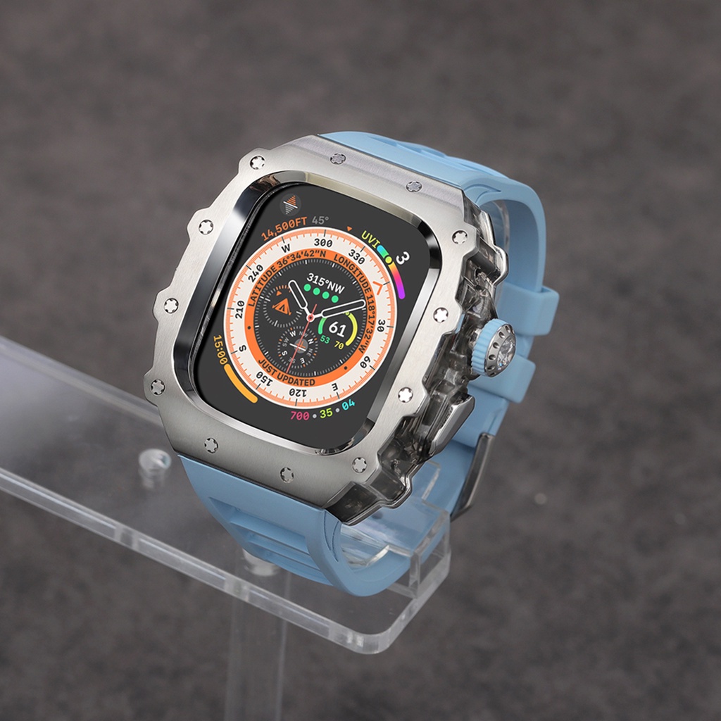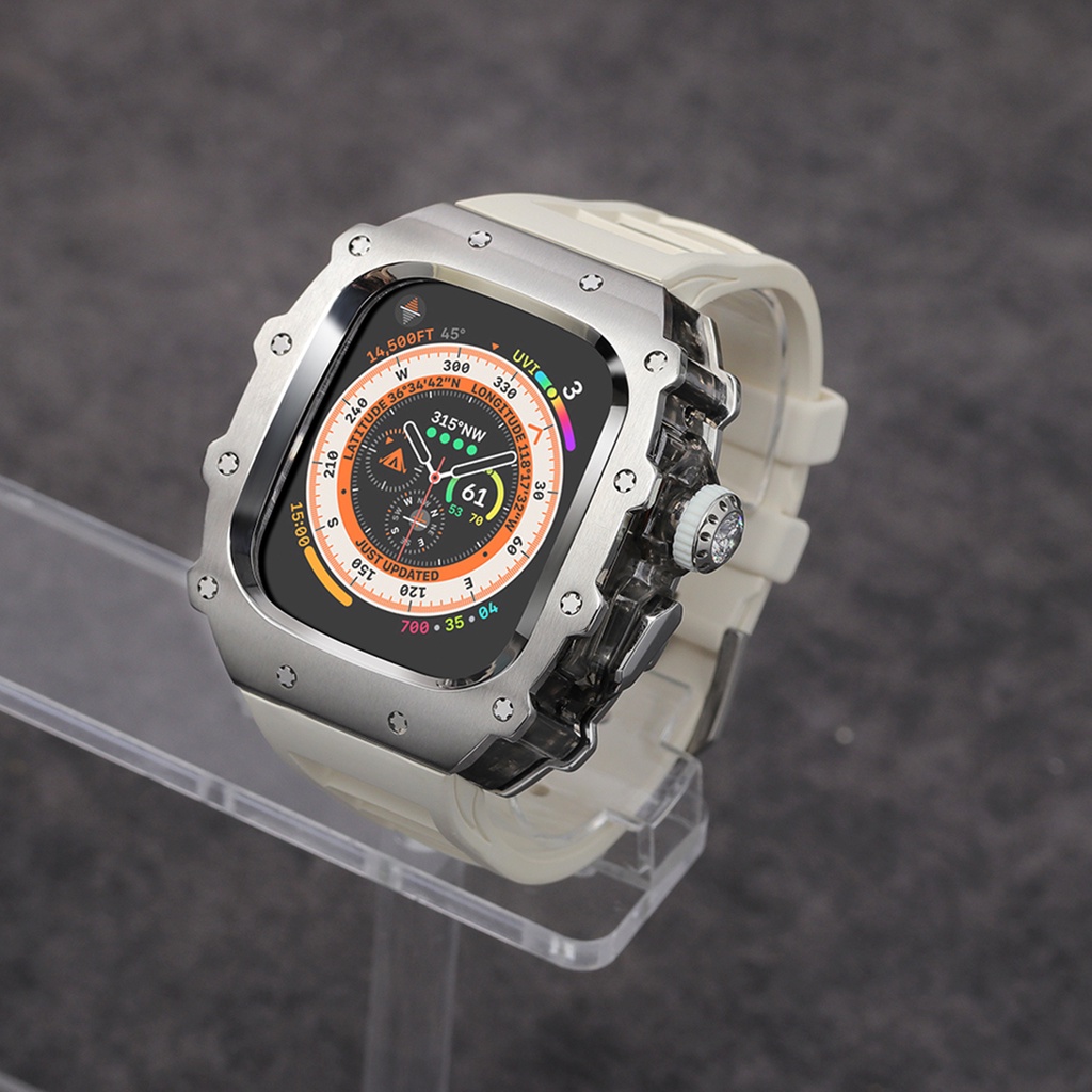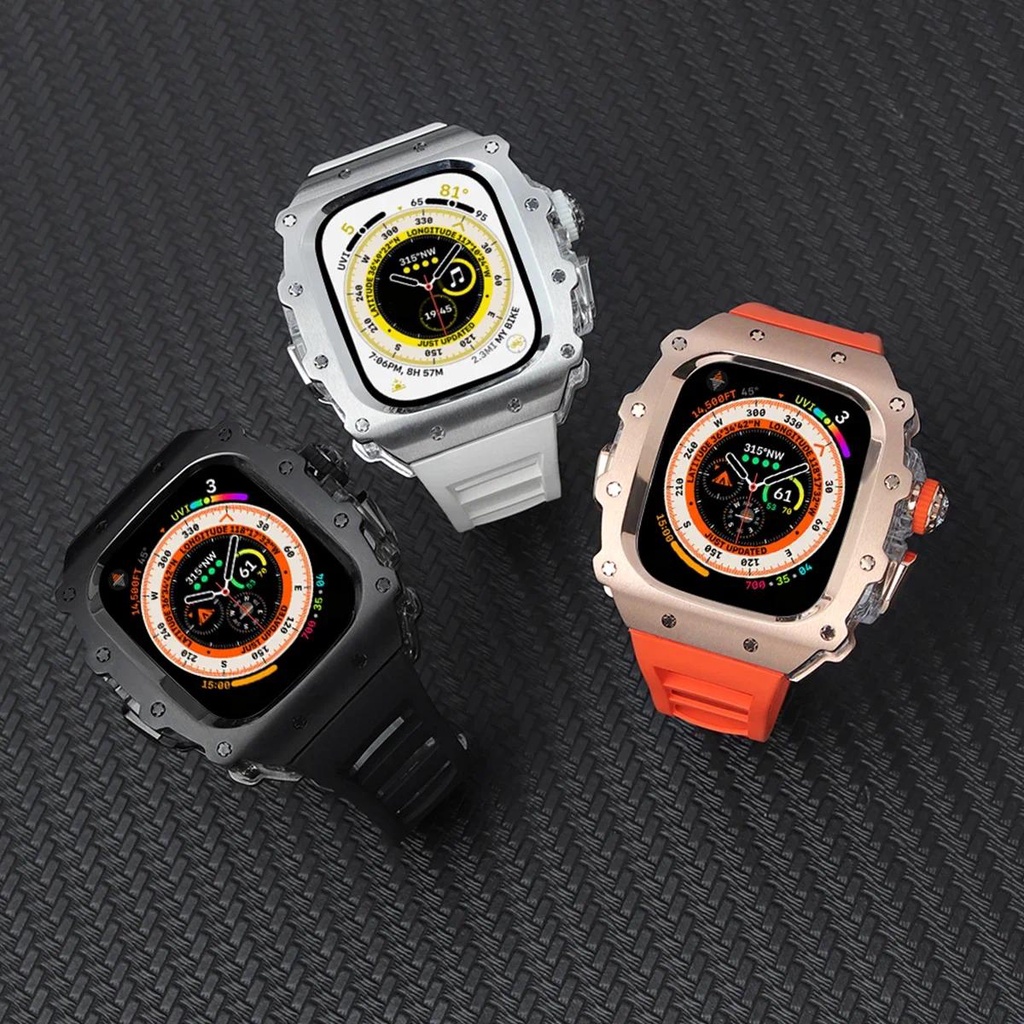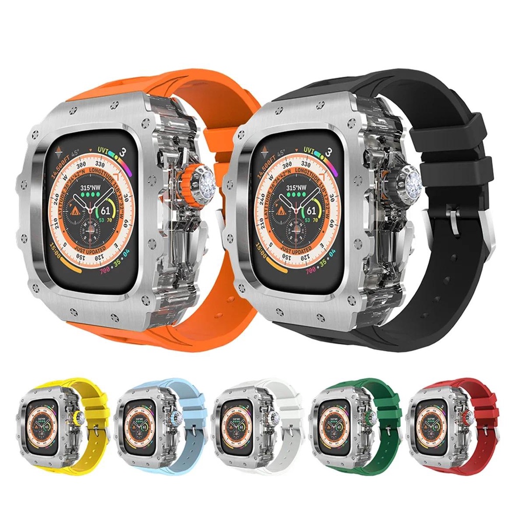 Stainless Steel Case for Watch Ultra 2 Band 49mm 45mm 44mm Modification Kit Metal Cover IWatch 9 8 7 6 5 SE Silicone Strap