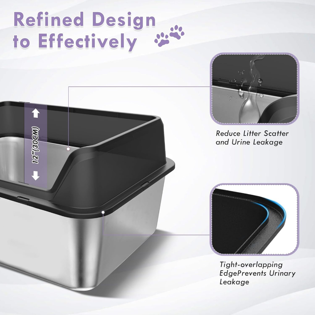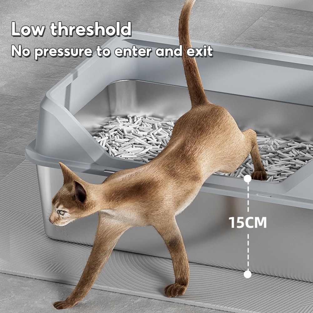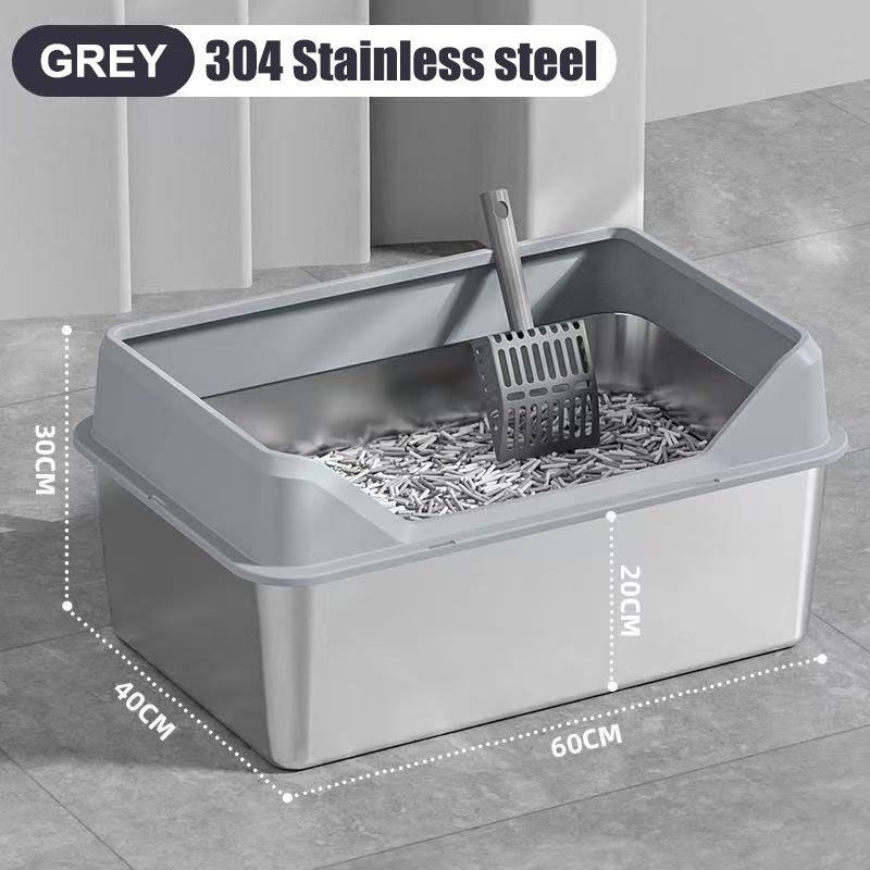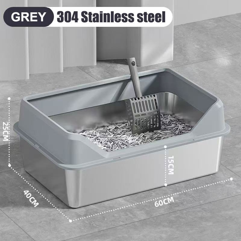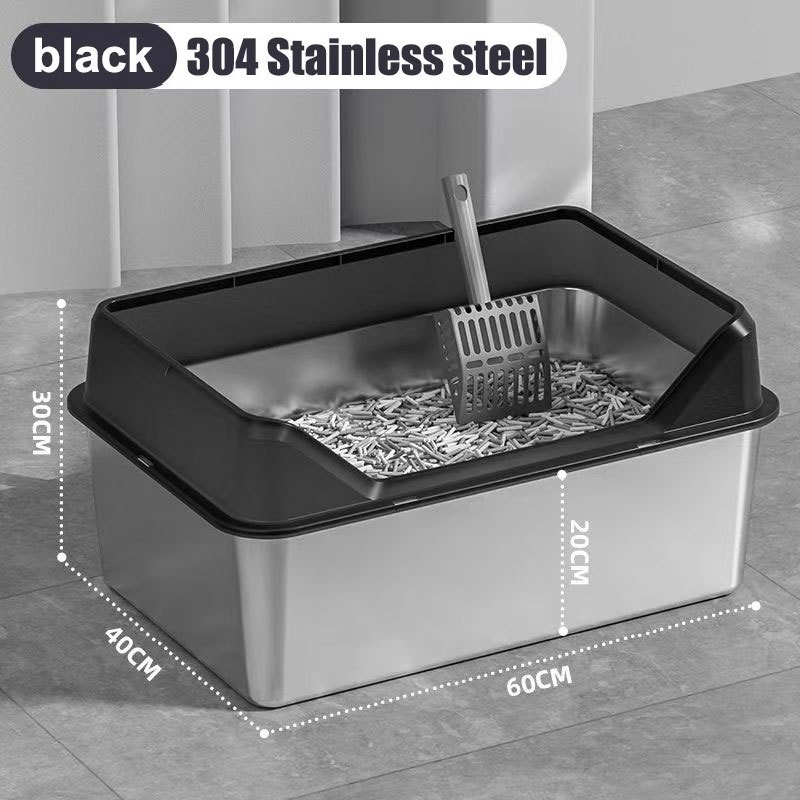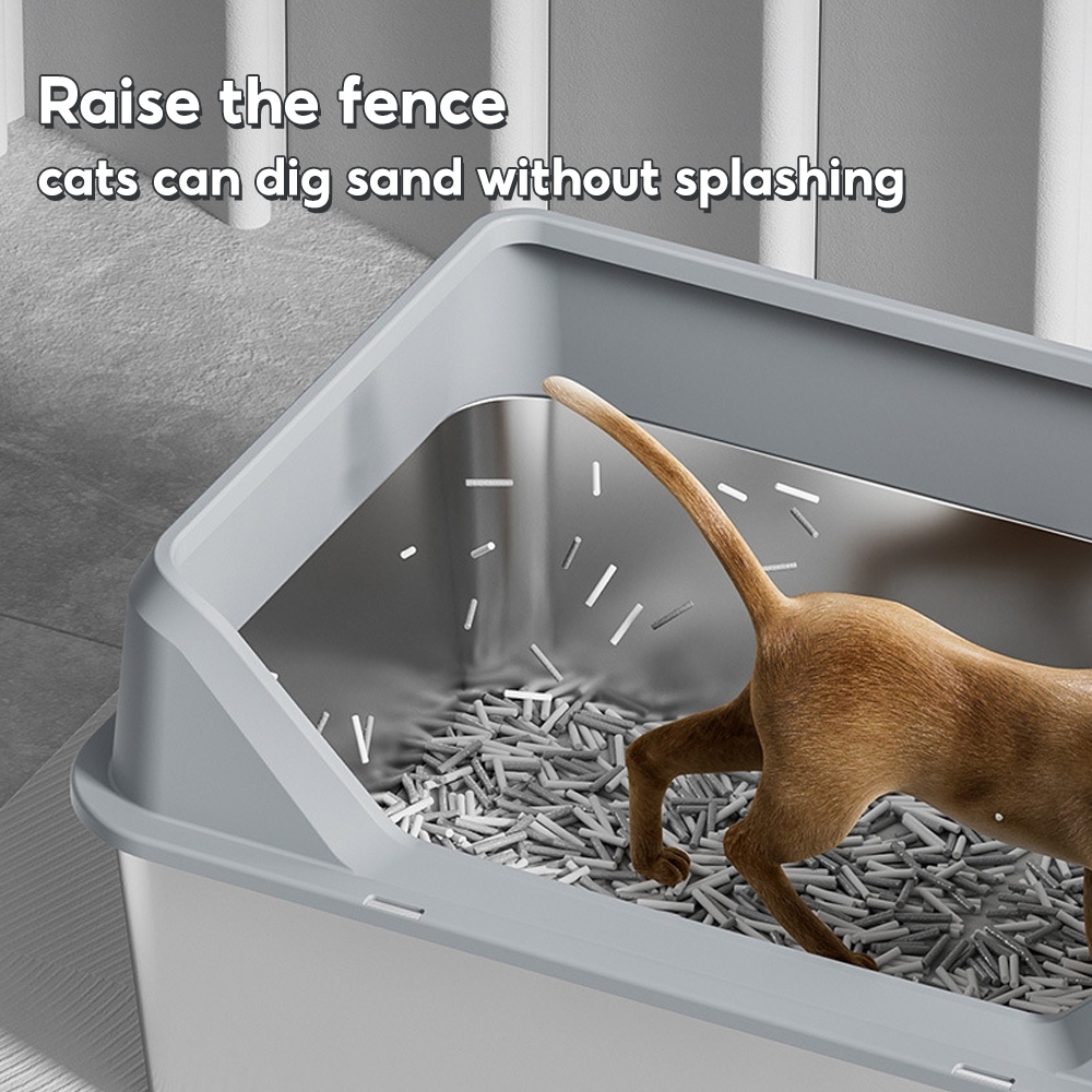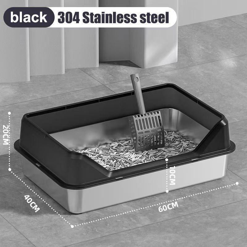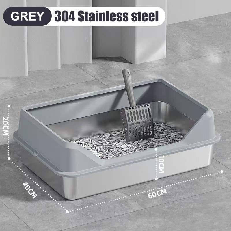 Stainless Steel Cat Litter Box Side Entry High Fence Spacious Layout Easy Clean with Free Scoop