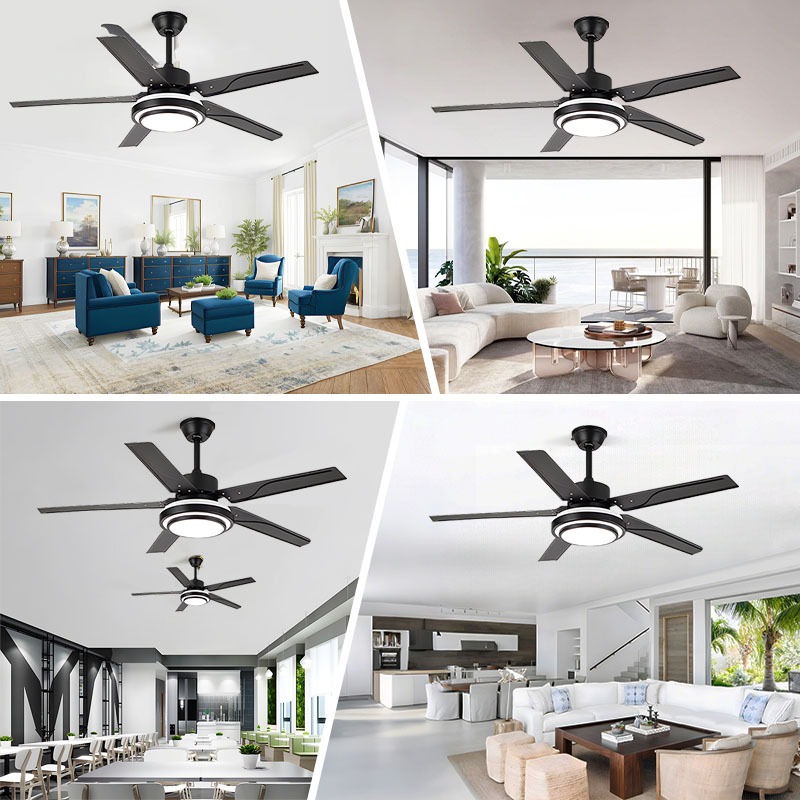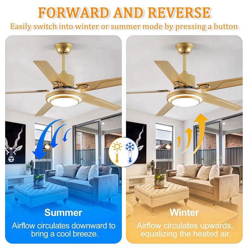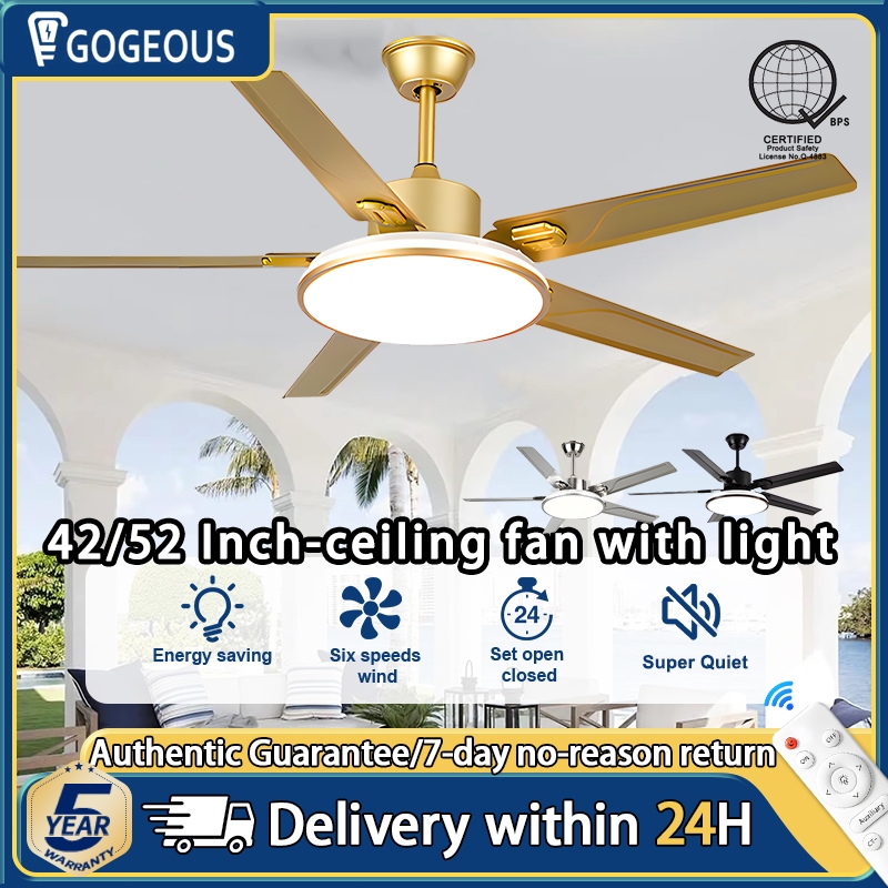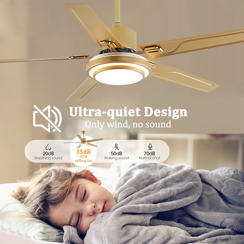 Stainless Steel Ceiling Fan With Light 3 Color 6 Speeds 5 Blades Big Size Ceiling Fan Strong Wind