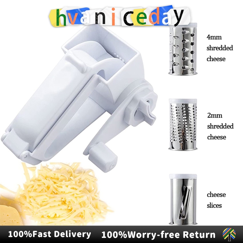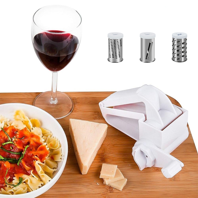 Stainless Steel Cheese Grater Rotary Grater Manual Cheese Cutter with Three Stainless Steel Drum
