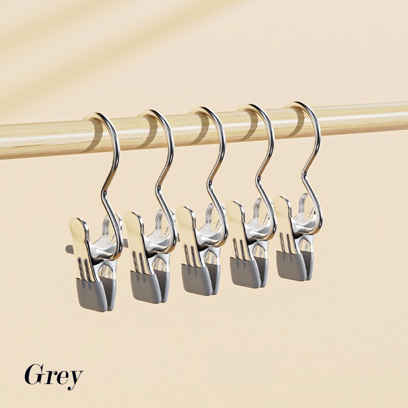 Stainless Steel Clothes Clip with Hook Hanging Clothes Pin Portable Clothespin Space Saving