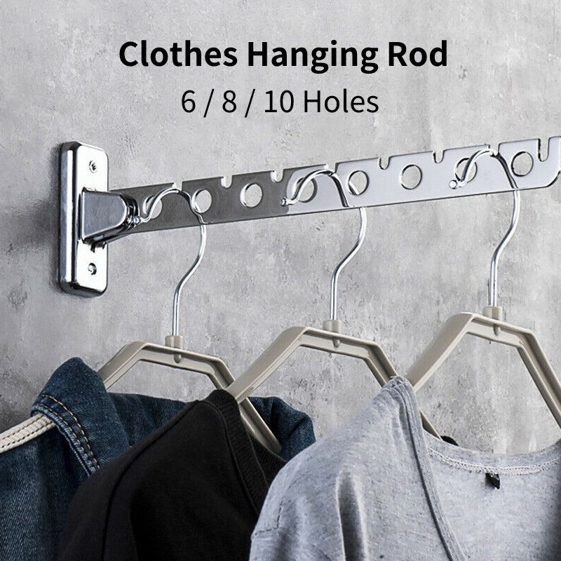 Stainless Steel Clothes Folding Hanging Rod Space Saver Folding Wall Mount Hanger Retractable
