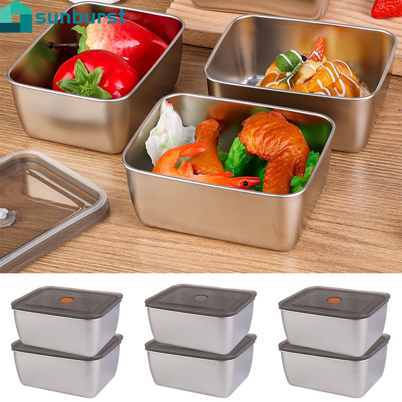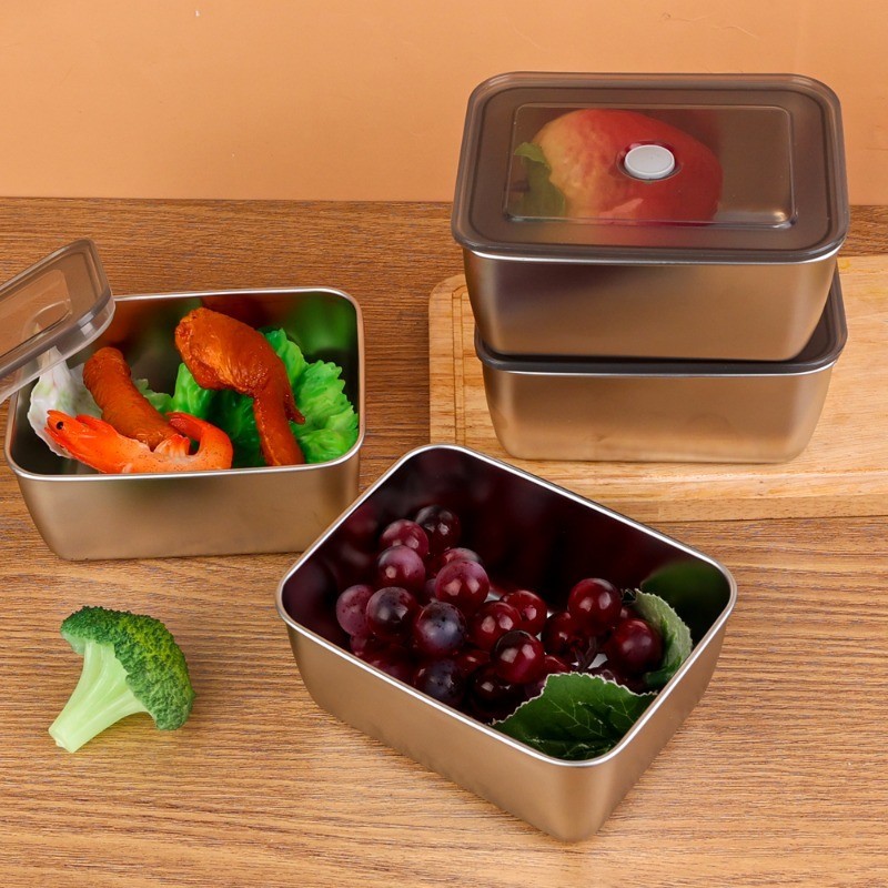 Stainless Steel Crisper - Food Grade 600ML - Multifunctional Minimalist - With Plastic Lid - Sealed Vegetable Food Boxes - For Refrigerator Fresh-keeping - Lunch Bento Box