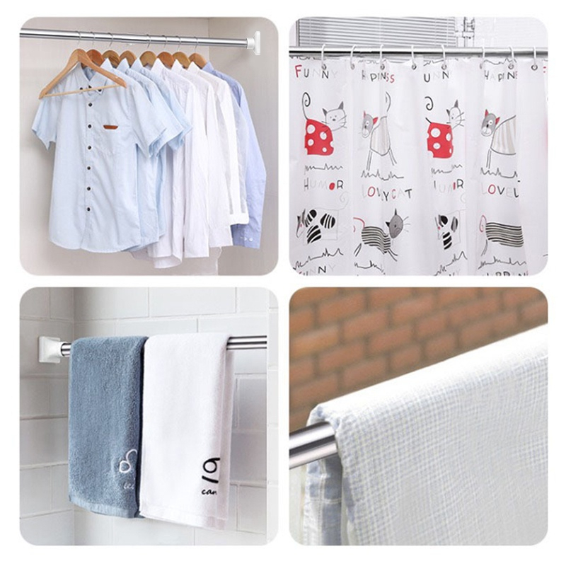 Stainless Steel Curtain Rod Telescopic Rod Adjustable Drying Rack Clothes Spring Rod 50-240cm