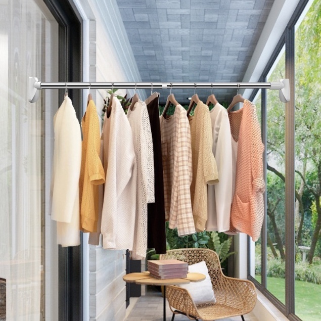 Stainless Steel Curtain Rod Telescopic Rod Adjustable Drying Rack Clothes Spring Rod 50-280cm