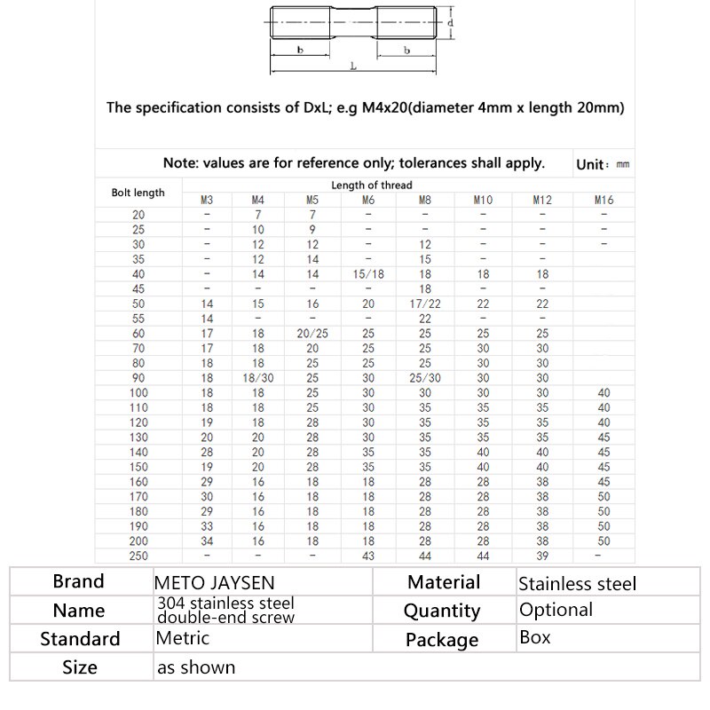 Stainless Steel Double End Thread Rod Dual Head Screws M6 M8 M10 Double-Threaded Bar Stud Bolts Length 25mm-90mm