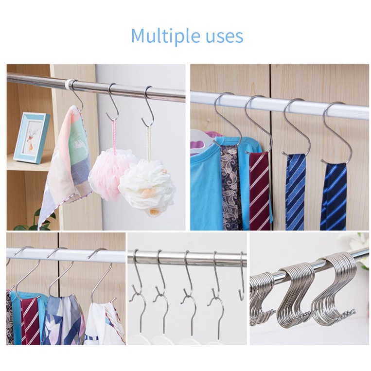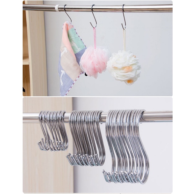 Stainless Steel Double S Hooks Set Round S Shaped Hooks Pro Chef Kitchen Tools S Hanging Hooks