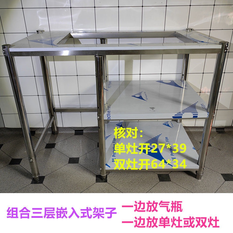 Stainless Steel Gas Stove Gas Cylinder Shelf Kitchen Desk Storage Rack Gas Bottle Liquefied Gas Stove Hole Dining Table